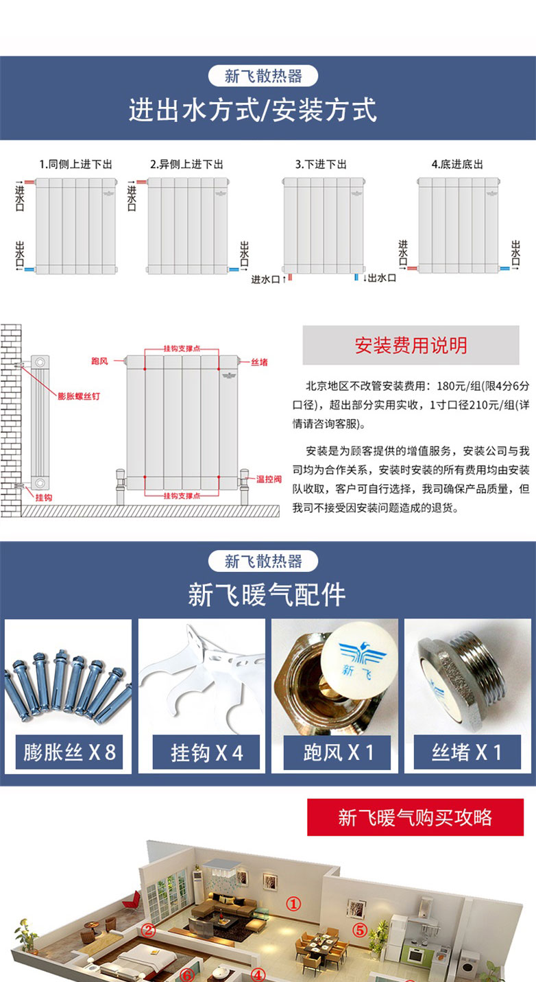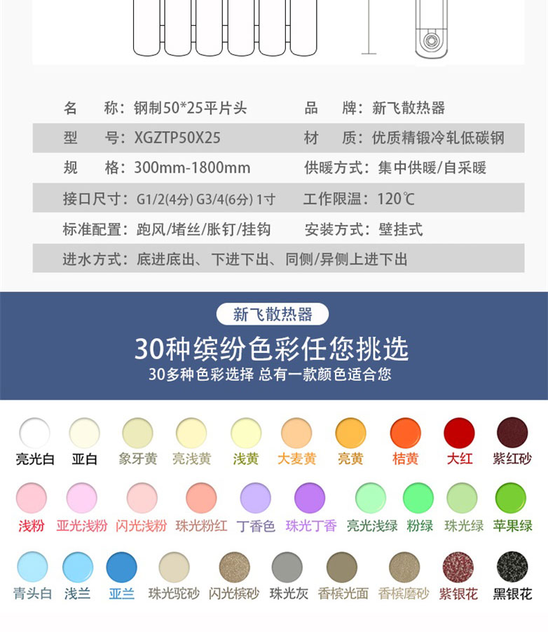 新飛鋼制暖氣片 50x25圓弧片頭型號
