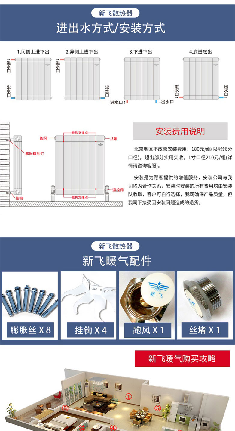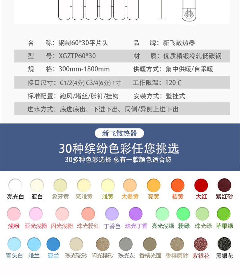 新飛鋼制暖氣片 60x30平片頭型號